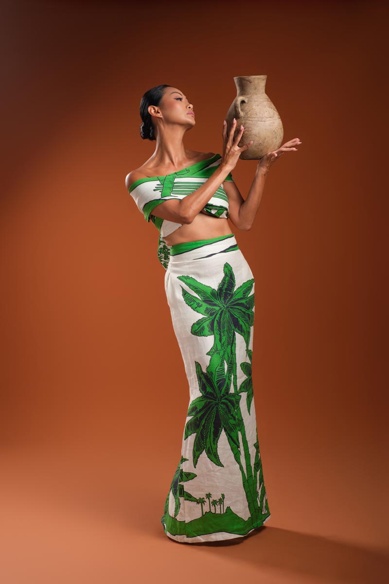 Embrace sunny days in this elegant summer linen long skirt, beautifully crafted in the vibrant pattern that symbolizes the green that Ubud offers. Inspired by FLIRT's Bali livelihood.